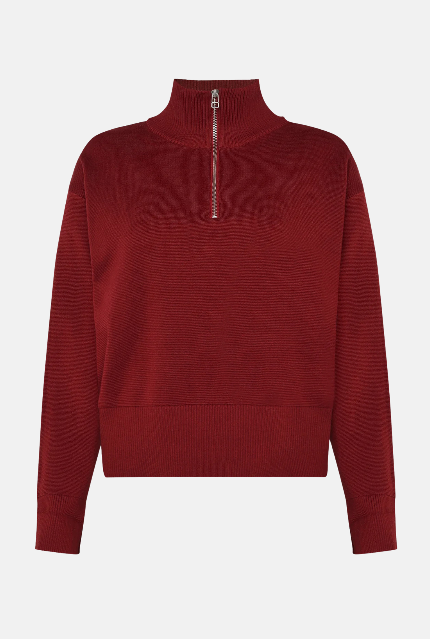 De trui Fionas is een gebreide trui gemaakt van 80% biologisch katoen en 20% nylon, wat zorgt voor een zachte kwaliteit. De trui heeft een regular fit en is ontworpen met een hoge hals die sluit met een rits, afgewerkt met brede geribde randen.